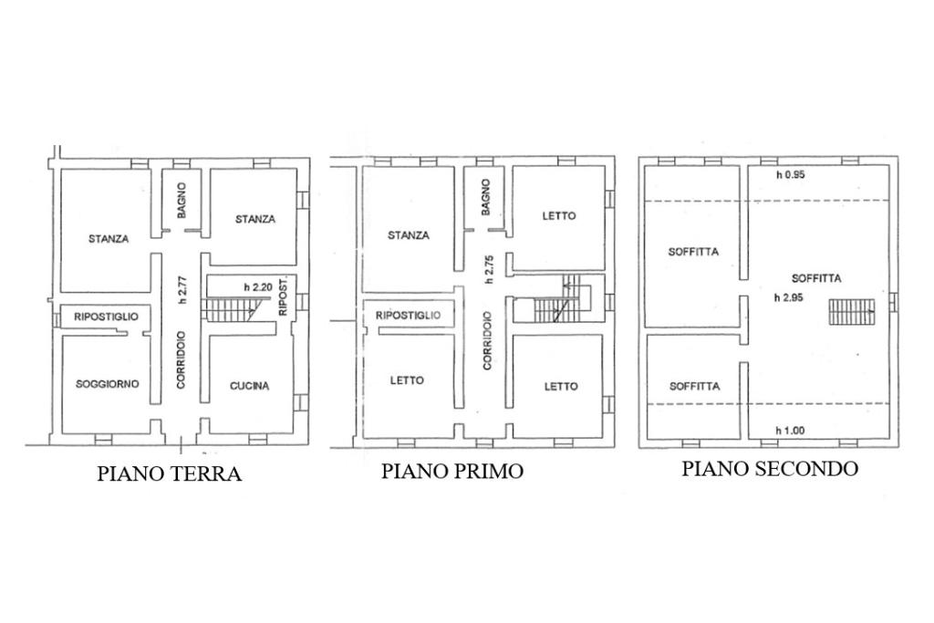 Al piano terra l’ingresso conduce a una zona giorno accogliente e funzionale, composta da soggiorno, sala da pranzo e cucina separata. Due camere da letto e un bagno con vasca completano il livello, offrendo una prima soluzione abitativa completa. Il primo piano ospita quattro spaziose camere matrimoniali e un secondo bagno, mentre all’ultimo livello si trova una grande soffitta, suddivisa in vani, ideale come spazio accessorio o da recuperare per ulteriori ambienti abitabili.