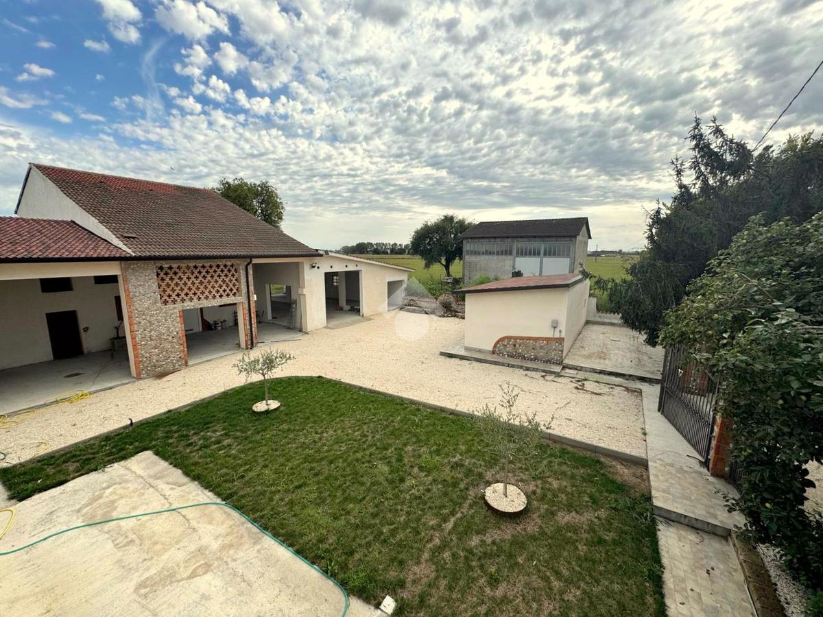 All’esterno, in corpo staccato, troviamo una suggestiva barchessa dove è stata ricavata una taverna con mattoni a vista, affiancata da vari rustici su più livelli e da un ampio porticato ideale per il ricovero di auto o attrezzature.