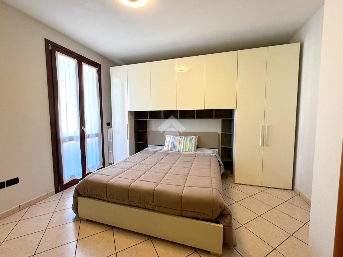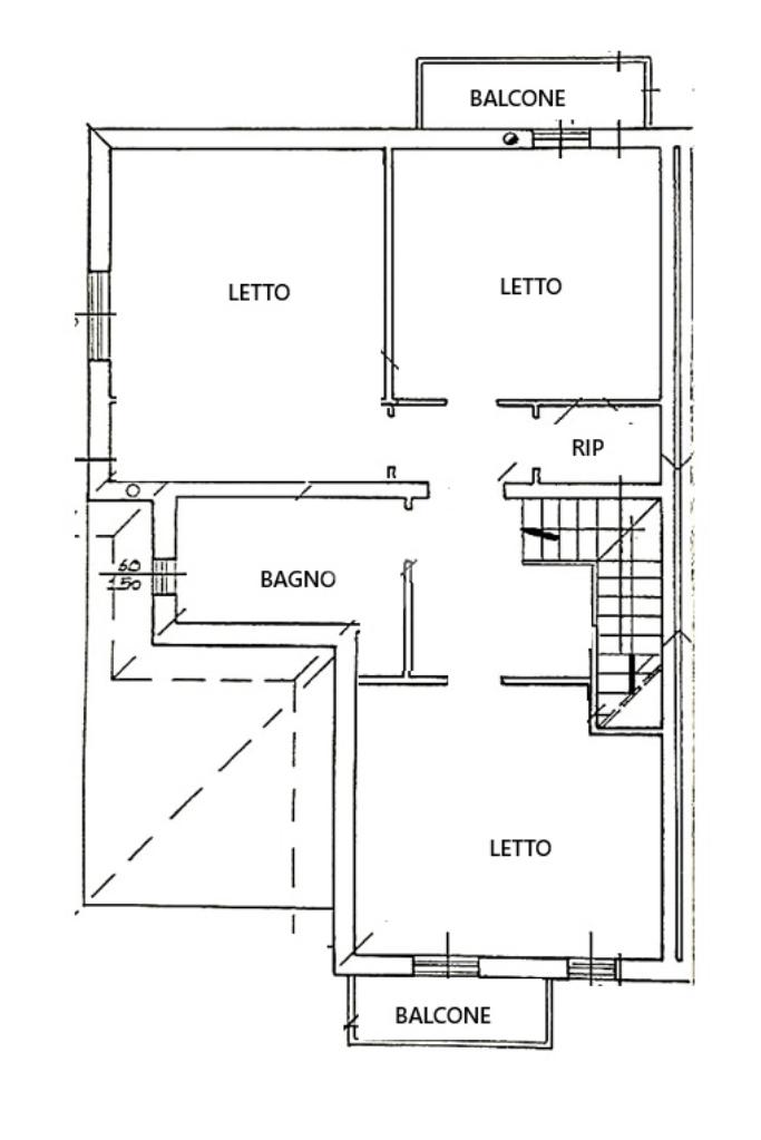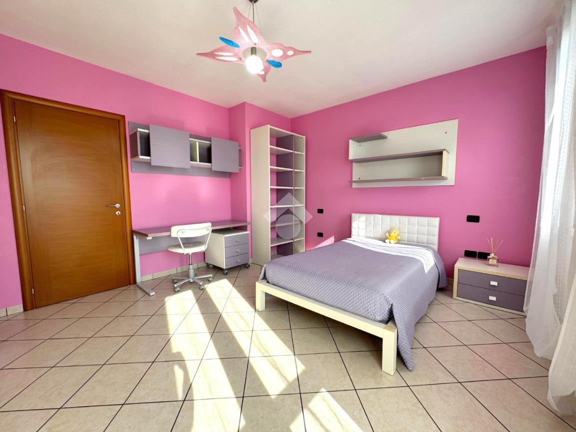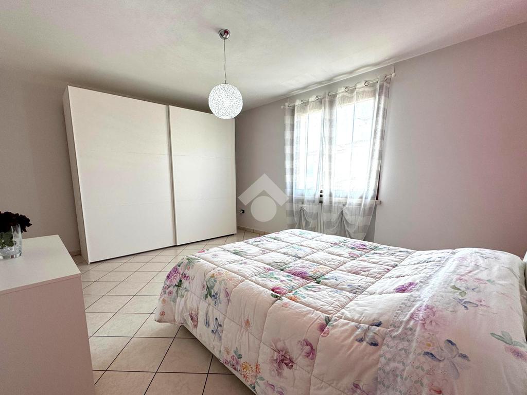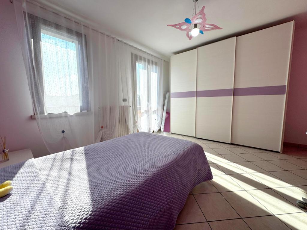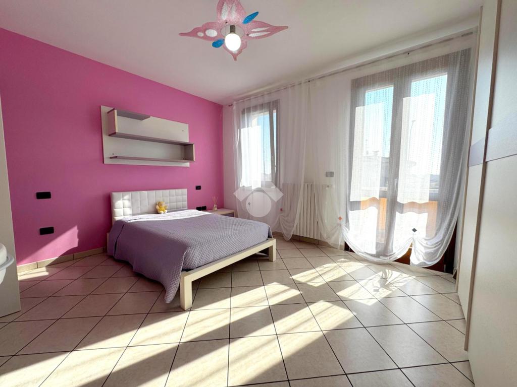 Al piano superiore si sviluppa la zona notte, composta da tre spaziose camere matrimoniali, due delle quali con accesso diretto al balcone, un bagno colorato dotato di vasca e un pratico ripostiglio.