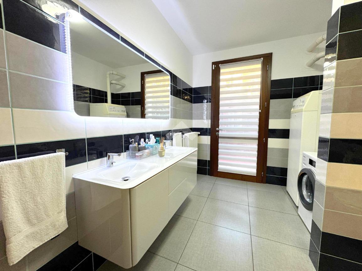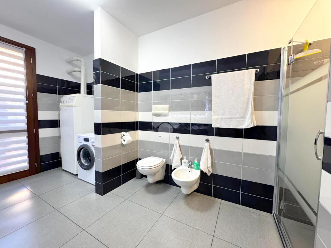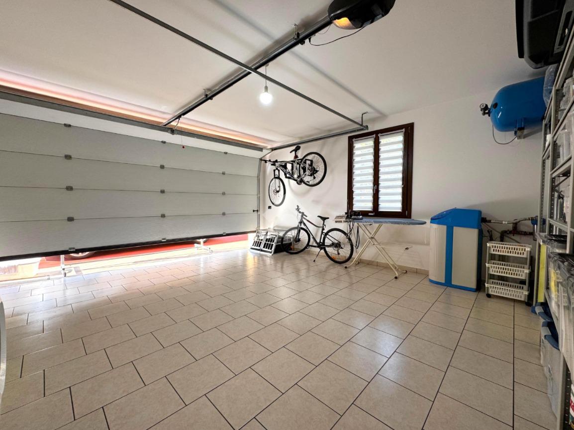 Il garage, di circa 32 mq, è finestrato, dotato di basculante elettrica e collegato direttamente all’interno dell’abitazione, offrendo comodità e sicurezza.