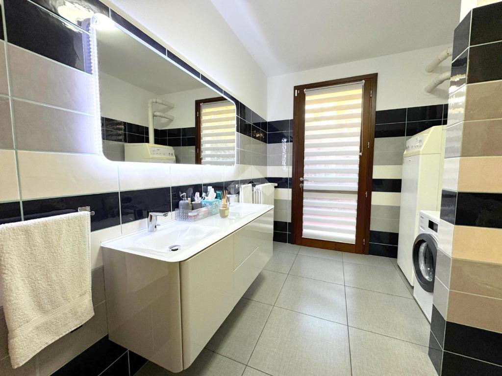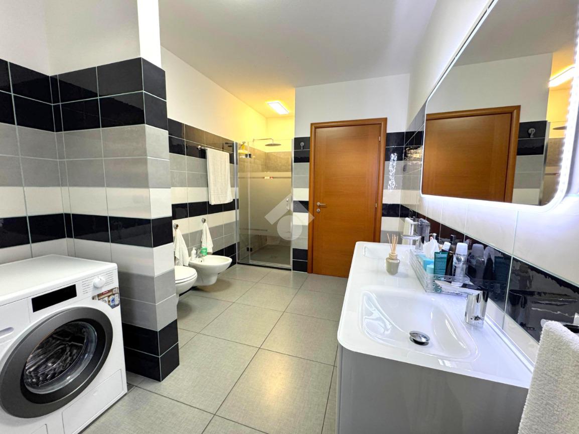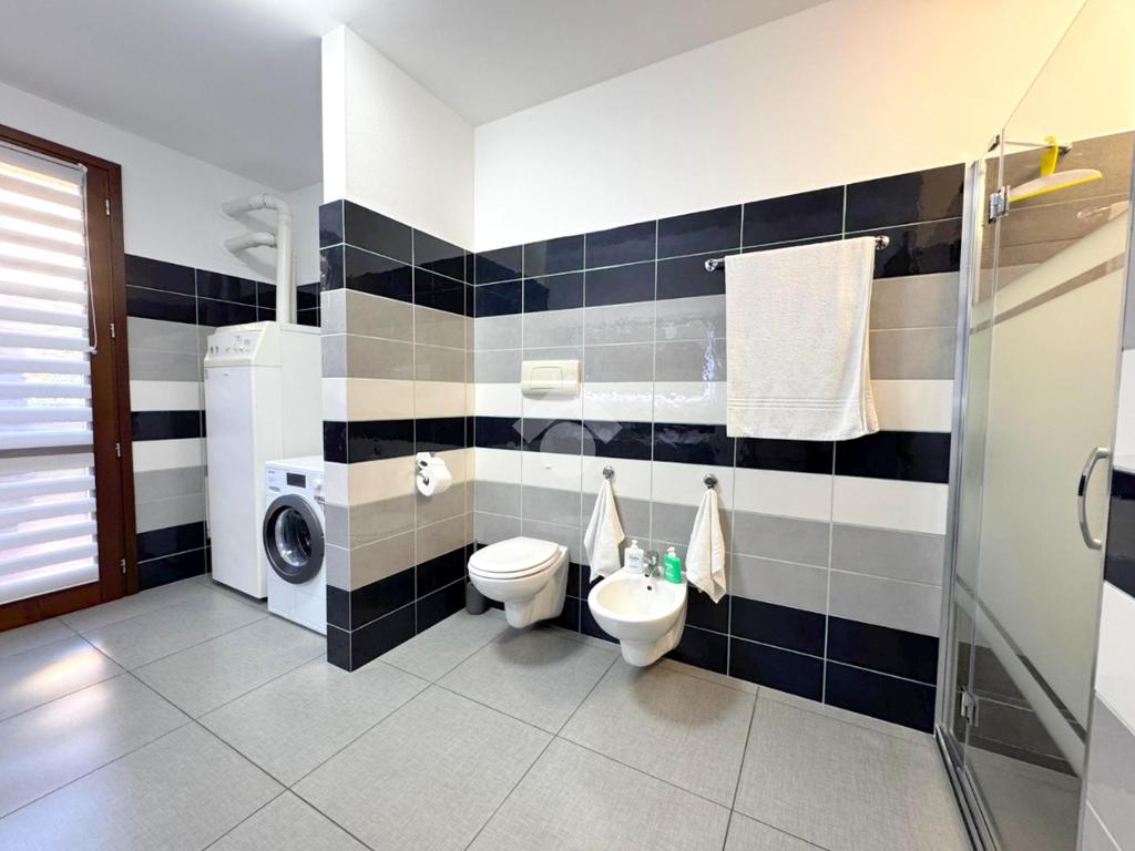 Al piano terra accoglie una raffinata zona giorno di 55 mq in open space con soggiorno e cucina a vista, impreziosita da un camino a legna 'Piazzetta' rivestito in marmo bicolore, vero cuore della casa. Completa il livello un elegante bagno con doccia e una comoda lavanderia, studiati per coniugare funzionalità ed estetica.