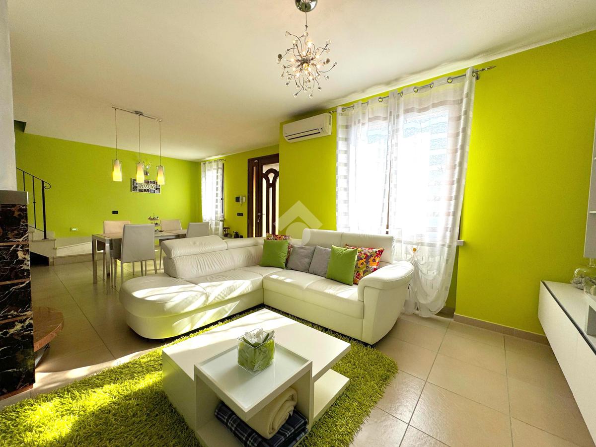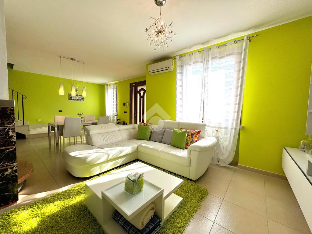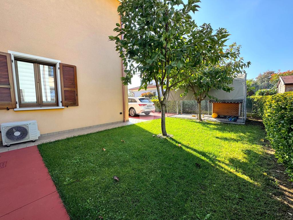 Disposta su due livelli e circondata da un ampio giardino piantumato su tre lati di circa 270 mq, l’abitazione offre ambienti luminosi e ben distribuiti.