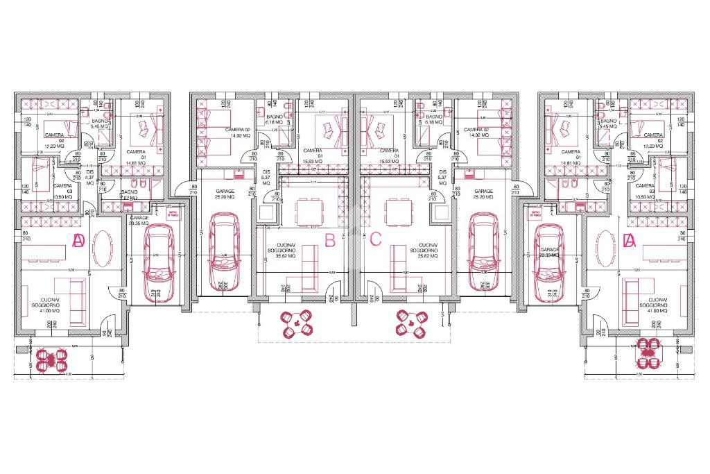 Le nuove ville quadrifamiliari, dalla superficie commerciale di circa 135 mq, sono sviluppate interamente su un unico livello e rappresentano la sintesi ideale tra funzionalità e stile, concepite per offrire un’esperienza abitativa di elevato standard qualitativo.